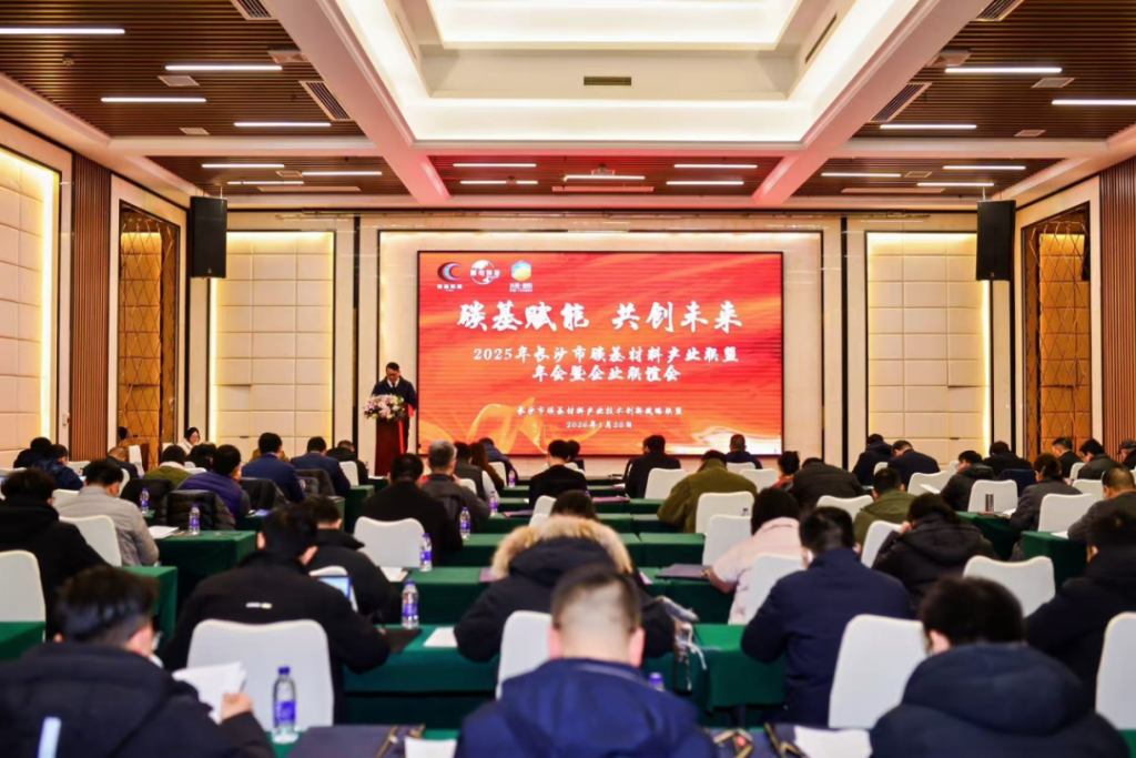 1月20日下午,2025年长沙市碳基材料产业联盟年会暨企业联谊会在长沙市茉莉花国际酒店圆满召开。湖南湘江新区(长沙高新区)管理委员会党工委委员、副主任王先民,湖南省工业和信息化厅产业集聚处三级调研员刘也能出席,长沙市科技局、长沙市民政局、湖南湘江新区管理委员会科技创新和产业促进局、长沙市科学技术信息研究所、长沙市制造业发展促进中心等单位相关负责人参会,与长沙市碳基材料产业技术创新战略联盟(以下简称“市碳基联盟”)理事会、专家委员会专家以及省内外企业代表100余人齐聚一堂,共话产业发展新机遇。
